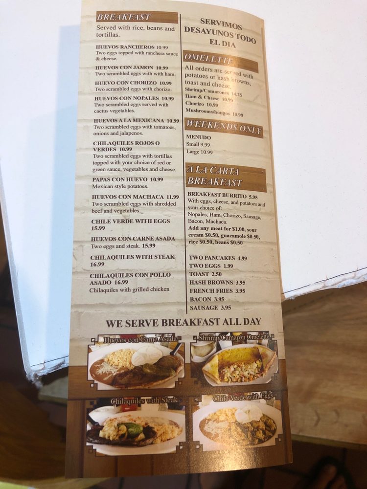 With eggs, cheese, and potatoes and your choice of: Nopales, ham, chorizo, sausage, bacon, machaca.